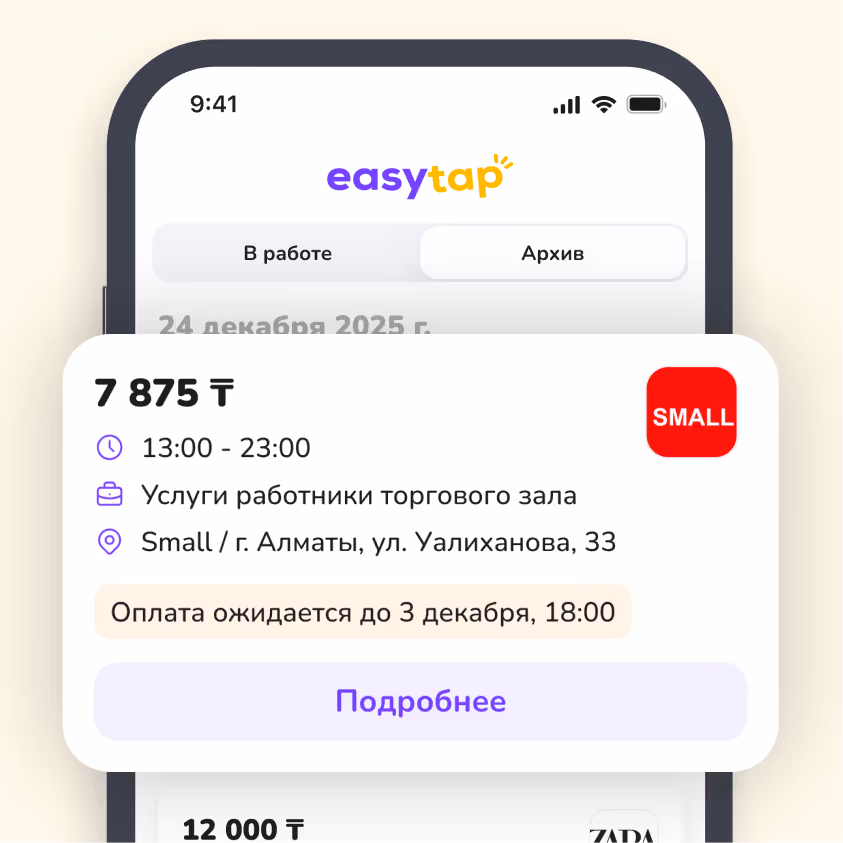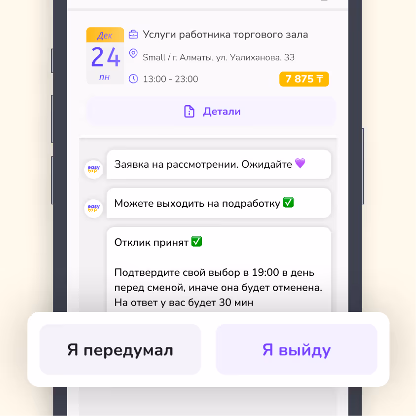 Я студент и раньше постоянно переживал из-за кредита. Через EasyTap начал брать смены в свободное от учебы время: склады, магазины, иногда рестораны. Благодаря еженедельным выплатам я смог погашать долг без просрочек, а через пару месяцев полностью закрыл кредит досрочно. Сейчас продолжаю работать через EasyTap уже без стресса и с нормальным доходом. Спасибо вам!