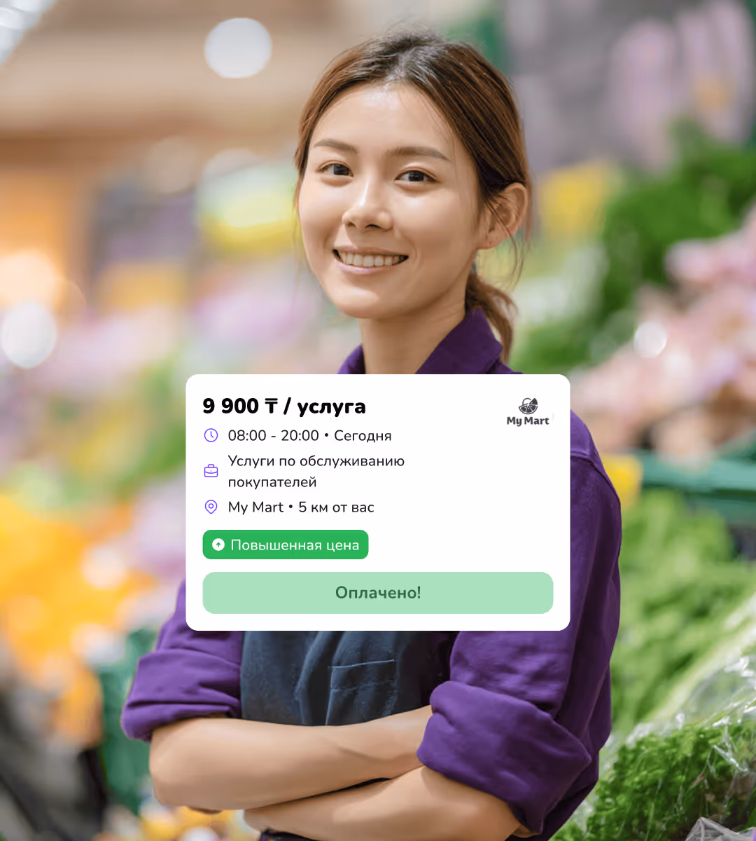 Ilovani oching, vaqt, joylashuv va to'lov bo'yicha smenani tanlang va bir bosishda ariza yuboring.